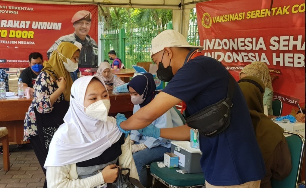 JAKARTA I DETEKSIJAYA.COM – Penyelenggaraan Vaksinasi Serentak, kolaborasi Badan Intelijen Daerah (BINDA) dan Dinas Kesehatan (DINKES) Provinsi DKI Jakarta di Pintu Lenggang Betawi Monas Jl. Merdeka Selatan Gambir Jakarta Pusat, ramai dikunjungi warga yang akan melakukan vaksin, Selasa (9/8). Mayoritas warga yang datang melakukan vaksin, berupa vaksin dosis 3 booster dengan menggunakan jenis vaksin Pfizer.