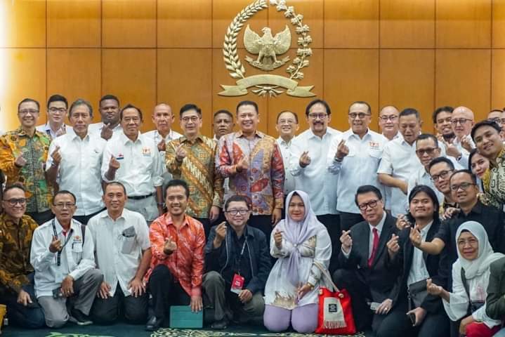 JAKARTA – Ketua MPR RI sekaligus Wakil Ketua Umum Partai Golkar dan Kepala Badan Hubungan Penegakan Hukum, Pertahanan dan Keamanan KADIN Indonesia Bambang Soesatyo mengungkapkan terdapat keterkaitan yang erat antara Empat Pilar MPR RI (Pancasila, UUD NRI Tahun 1945, NKRI, dan Bhineka Tunggal Ika) dengan dunia usaha. Salah satunya terlihat dari proses lahirnya UU No.1/1987 tentang Kamar Dagang dan Industri (KADIN).