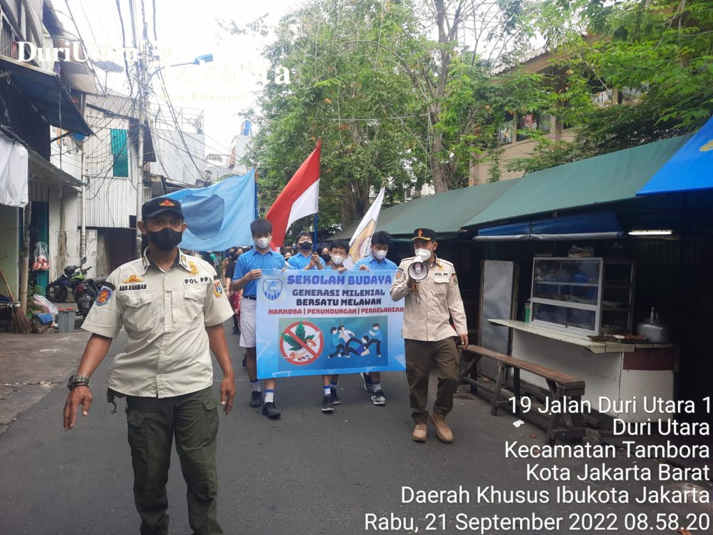 JAKARTA | DETEKSIJAYA.COM – Dalam rangka memberikan informasi dan menambah wawasan tentang upaya pencegahan dan penyalahgunaan narkoba, Kelurahan Duri Utara, Kecamatan Tambora, Jakarta Barat menggelar kegiatan soaialisasai Pencegahan, Pemberantasan, penyalahgunaan dan Peredaran Gelap Narkotika (P4GN) di sekolah dan lingkungan warga sekitar pada hari Rabu (21/09/2022).