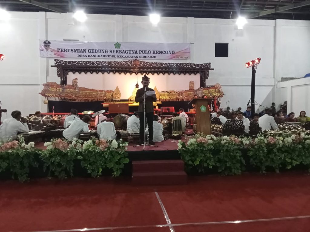 DETEKSIJAYA.COM – Gedung serbaguna warga desa Rangkah Kidul Kecamatan Kota, Sidoarjo telah diresmi dibuka. Di namai gedung Pulo kencana dibuka dengan pagelaran wayang kulit oleh dalang Sigit Harimurti membawa lakon ‘Krisna Gugah’ membuat warga Rangkah senang suka ria, Jumat(5/7/2024)malam.