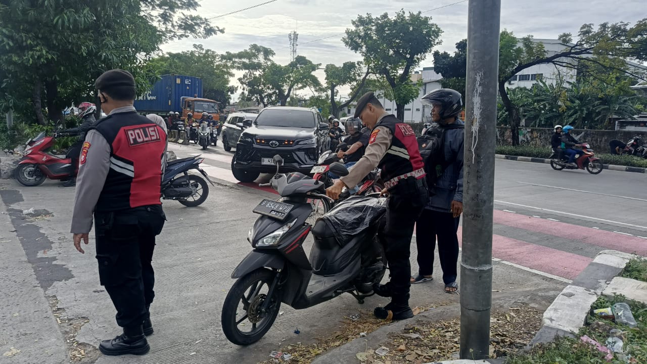 Dalam kegiatan tersebut, dua personel Unit Samapta Aipda Engkos dan Aipda Herdiyana terlihat membantu pengendara sepeda motor yang mogok di tengah padatnya arus lalu lintas.