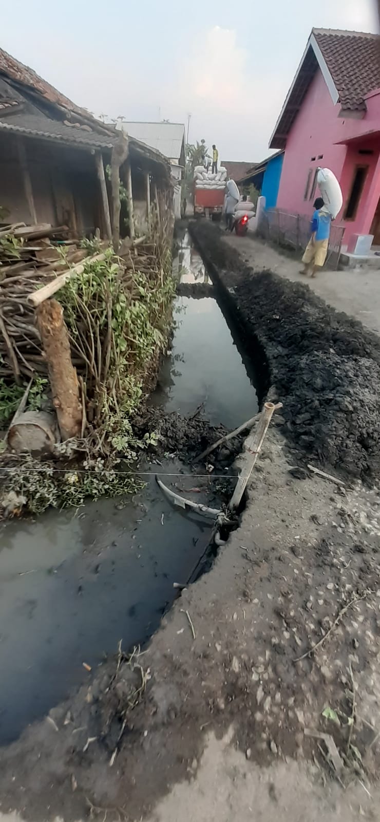 di saluran Rt 06/02 Desa Kampung Sawah Kecamatan Jayakerta sudah dikerjakan sekitar seminggu yang lalu oleh CV Purbaya
