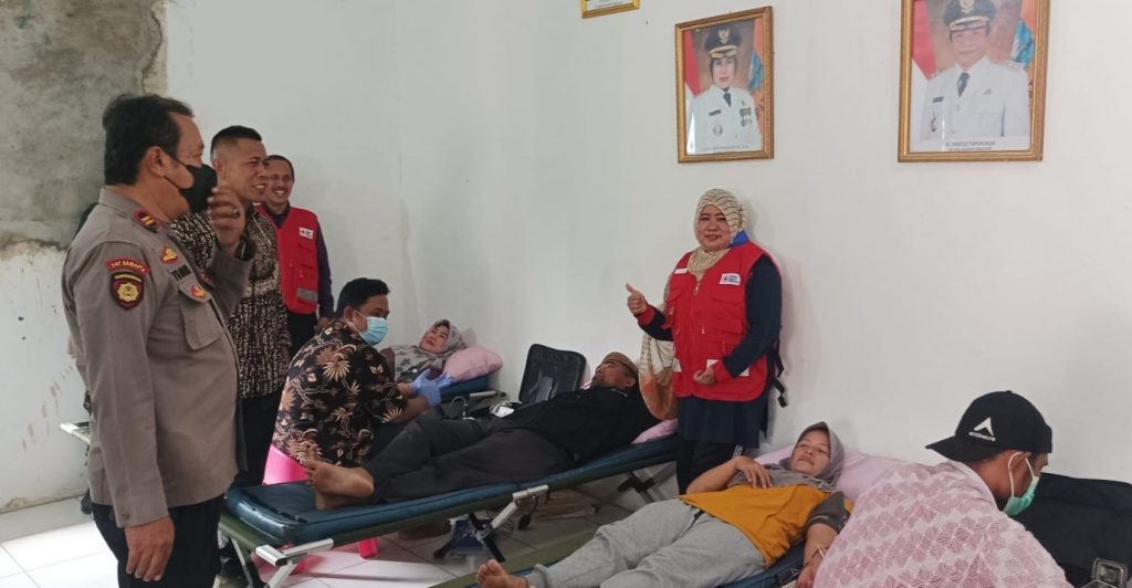 BANTEN | DETEKSIJAY.COM – Wakapolsek Pamarayan Polres Serang, Polda Banten, Iptu Teguh Yuni menghadiri kegiatan aksi donor darah yang dilaksanakan di kantor Desa Pamarayan, Kecamatan Pamarayan, Kabupaten Serang hari Kamis (28/07/2022).