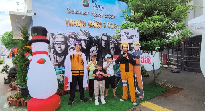 Sejumlah anggota pos pengamanan tampak mengenakan kostum cosplay karakter Naruto, yang sontak menarik perhatian masyarakat dan wisatawan yang berkunjung.