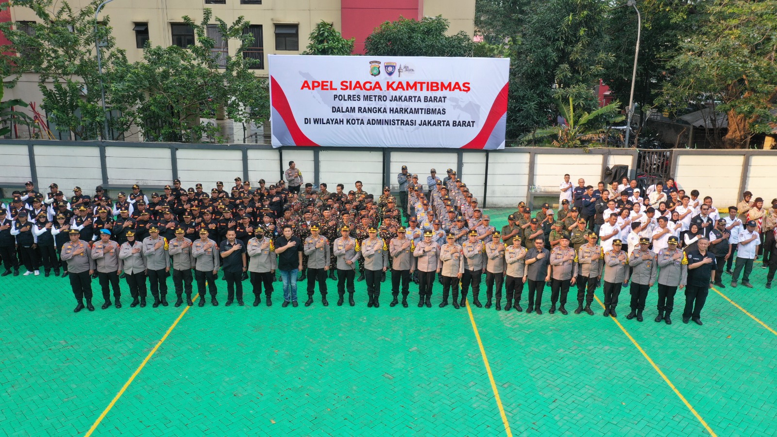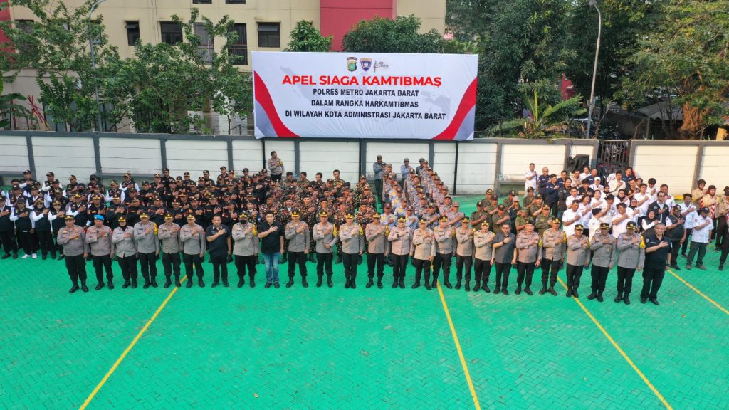 Jakarta Barat, DETEKSIJAYA.COM – Dalam upaya menjaga situasi keamanan dan ketertiban masyarakat yang aman, nyaman, dan kondusif, Polres Metro Jakarta Barat menggelar apel siaga kamtibmas bersama unsur Potensi Masyarakat (Potmas) di Lapangan Hijau Polres Metro Jakarta Barat, Kamis (9/10/2025).
